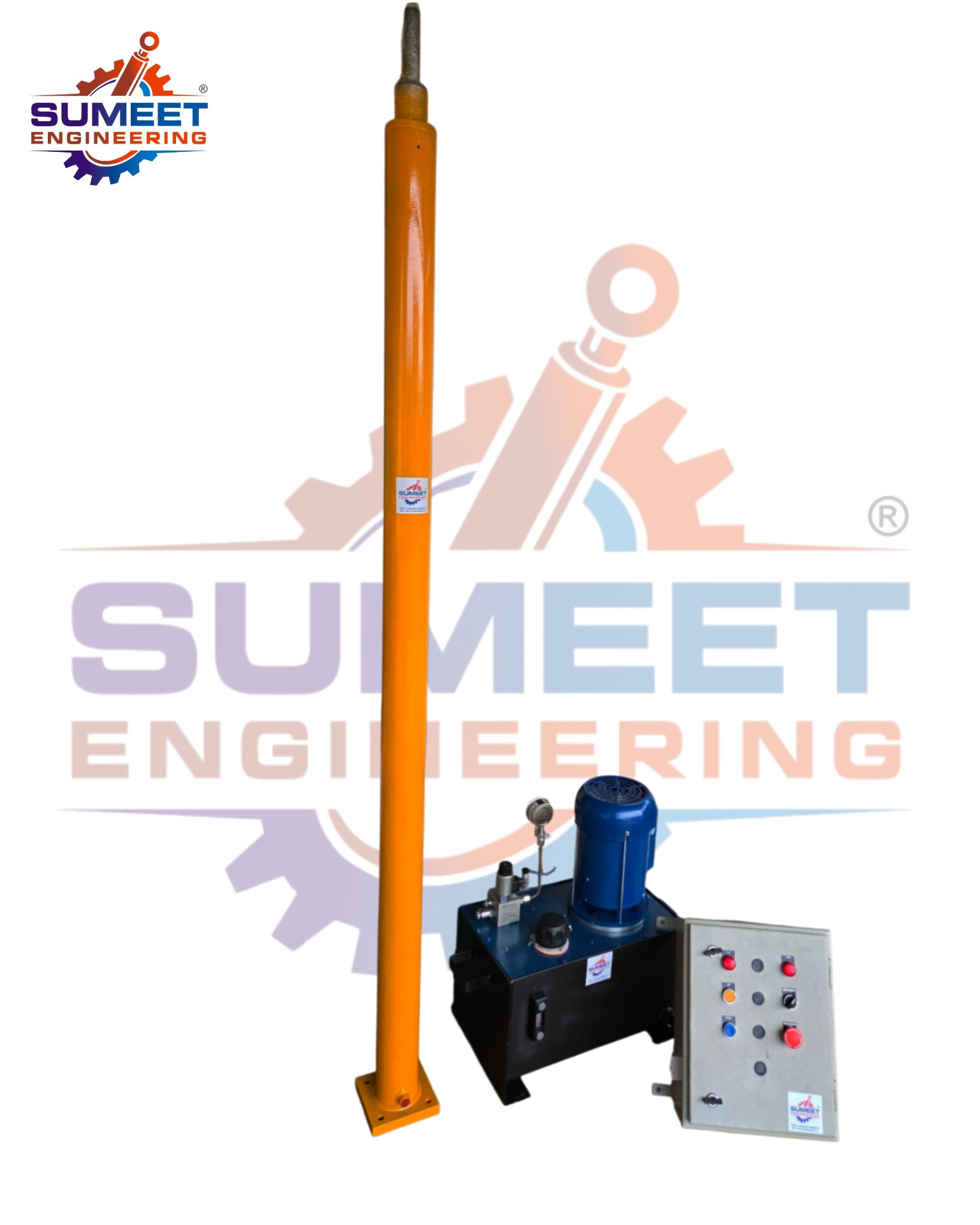 Square Head Flange Hydraulic Cylinders Manufacturers We are also supply in Andhra Pradesh, Arunachal Pradesh, Assam, Bihar, Chhattisgarh, Goa, Gujarat, Haryana, Himachal Pradesh, Jharkhand, Karnataka, Kerala, Madhya Pradesh, Maharashtra, Manipur, Meghalaya, Mizoram, Nagaland, Odisha, Punjab, Rajasthan, Sikkim, Tamil Nadu, Telangana, Tripura, Uttar Pradesh, Uttarakhand, and West Bengal Bore Diameter 140 mm Cylinder Type Single Acting Material Mild Steel Usage/Application Industrial Max Pressure 400 Bar Capacity 5 Ton Surface Finish Paint Coated Set Contain 2 Piece Brand Sumeet Established in the year “2002” in Ahmedabad, Gujarat. We “Sumeet Engineering” engaged as the foremost Manufacturer And Wholesale of Hydraulic Loader Cylinders, Hydraulic Power Pack, Industrial Hydraulic Cylinders
